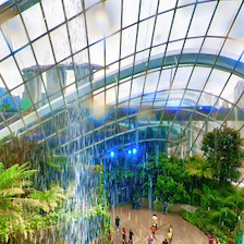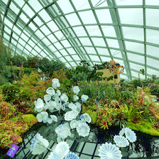 Im 0,8 Hektar überspannenden Glashaus mit der Bezeichnung Cloud Forest (Wolkenwald) wird die Vegetationszone der Tropen in Höhen von ca. 1.000 bis 3.000 Metern über Meereshöhe nachgestellt. Eine 35 Meter hohe Turmkonstruktion stellt einen Berg dar, der mit typischen Vertretern seiner Flora, wie Orchideen, Bromeliengewächse oder Flamingoblumen (Anthurien) bedeckt ist.