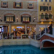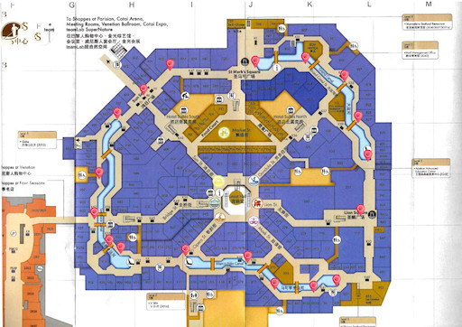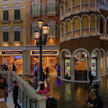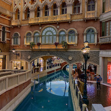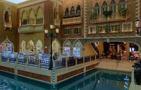 Zur Las Vegas Sands Gruppe gehören auch die benachbarten Resort: Four Seasons, Londoner und Parisan. Man kommt über klimatisierte Brücken von einem Resort ins Nächste. Alle mit Shopping Center und Casino.